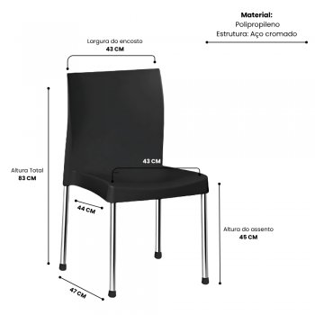 Ideal para cozinhas, salas de jantar, áreas gourmet ou ambientes corporativos, essa cadeira é uma opção prática e versátil para compor diferentes estilos de decoração.