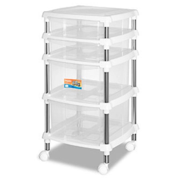 Gaveteiro 2G + 2P Branco e Transparente Com Rodízios Giratórios